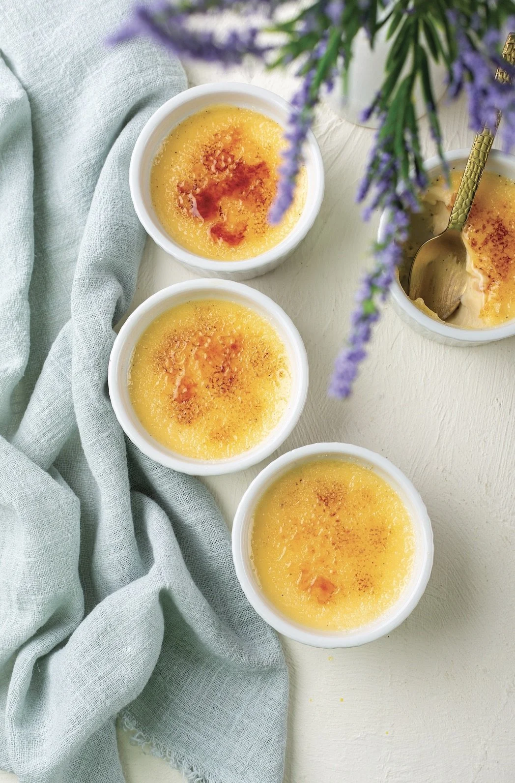 14. When ready to serve, wipe around the top edge of the dishes, sprinkle 1½ teaspoon of caster sugar over each ramekin and spread it out with the back of a spoon to completely cover.